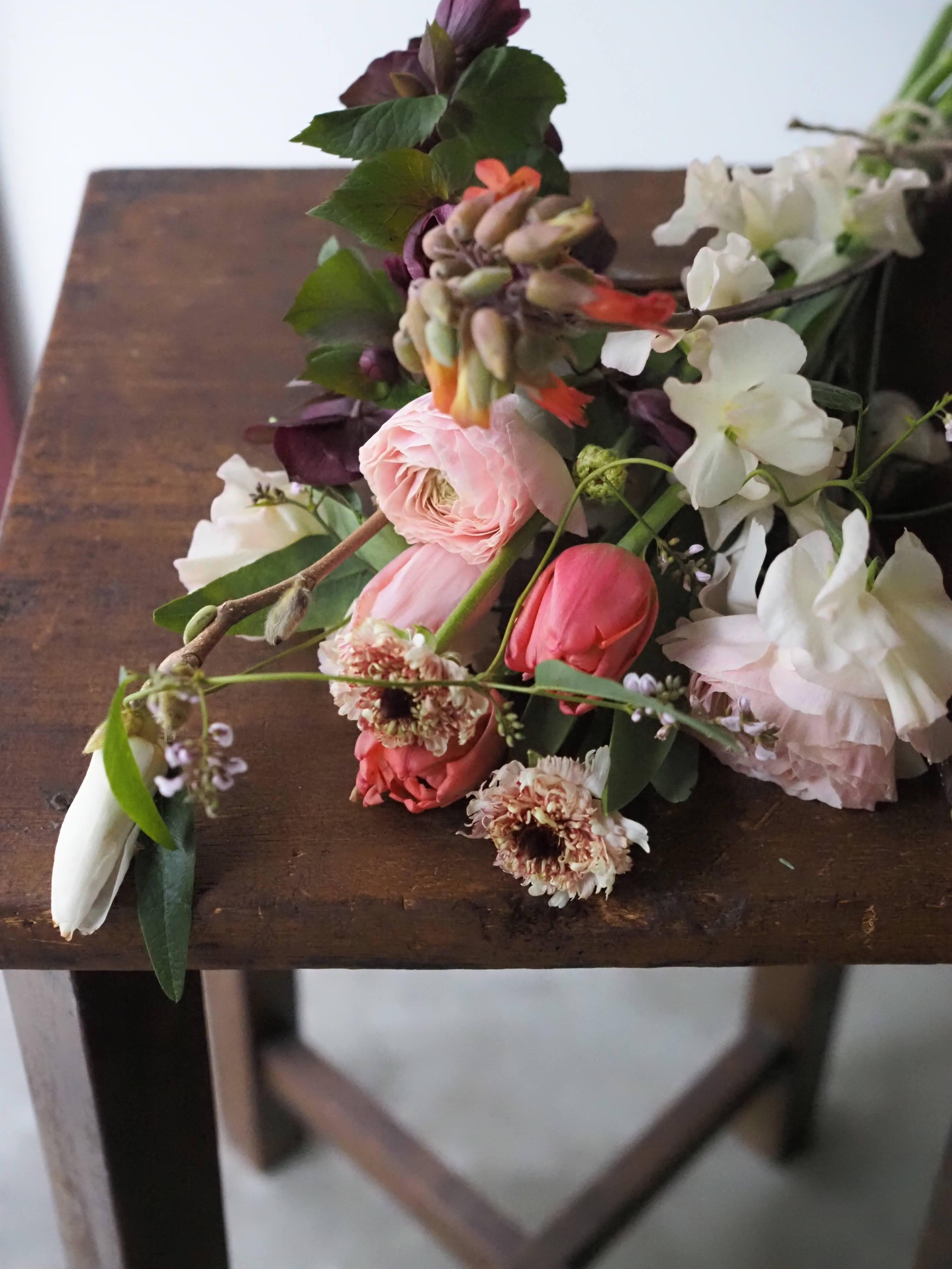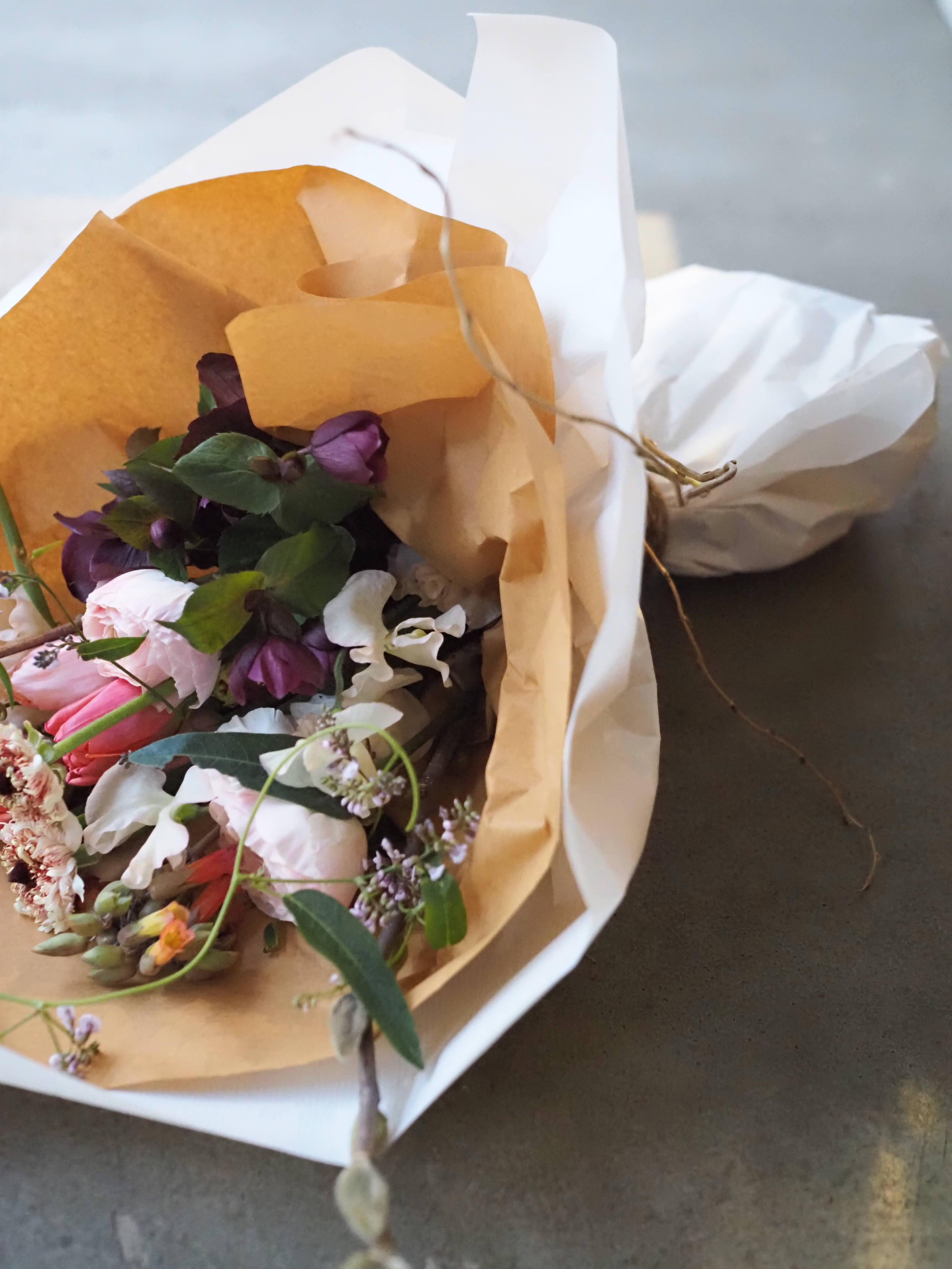 制作物 〇春のお花をブーケにし、ラッピングまでおこないます